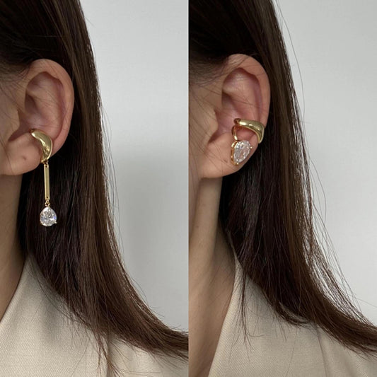 Unique Asymmetric Zircon Gold-Plated/Silver Ear Clip Long Ear Hanging