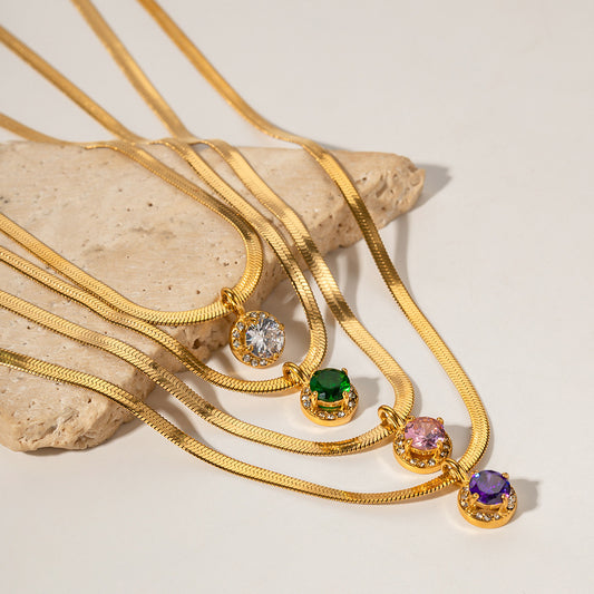 12 naturliga födelsestenar på 18K guldpläterat halsband