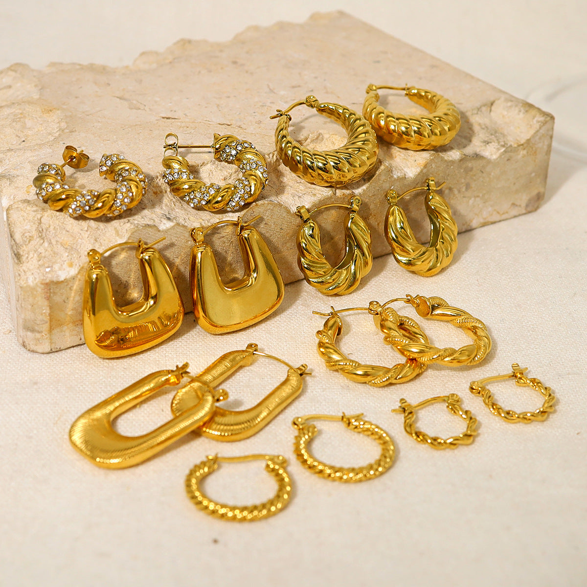 Upplev den ultimata stilen med vår Ushape-kollektion - med fantastiska 18K guldpläterade titanstålörhängen. Lyft upp ditt dagliga utseende med detta sexiga och eleganta tillägg som verkligen kommer att få dig att sticka ut!