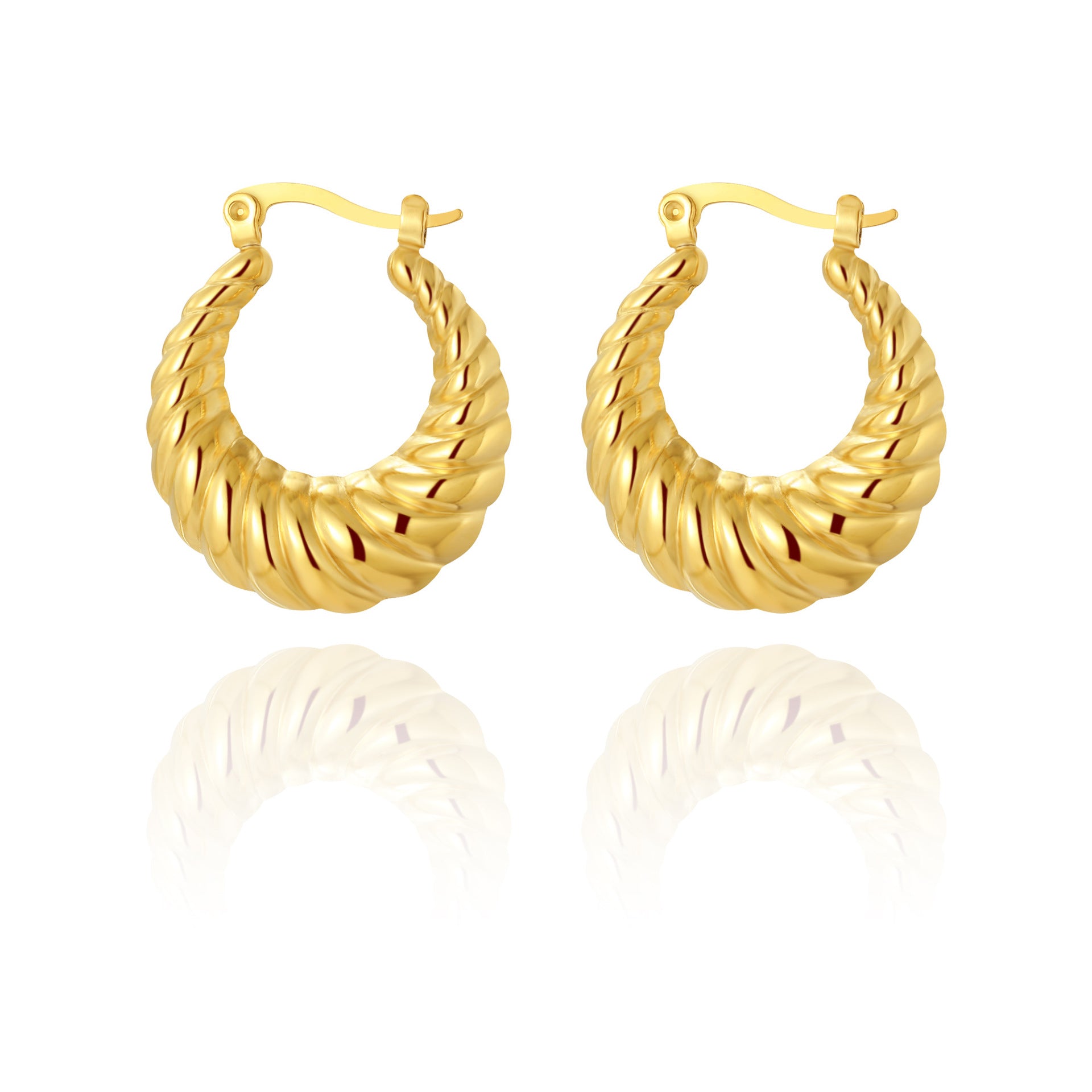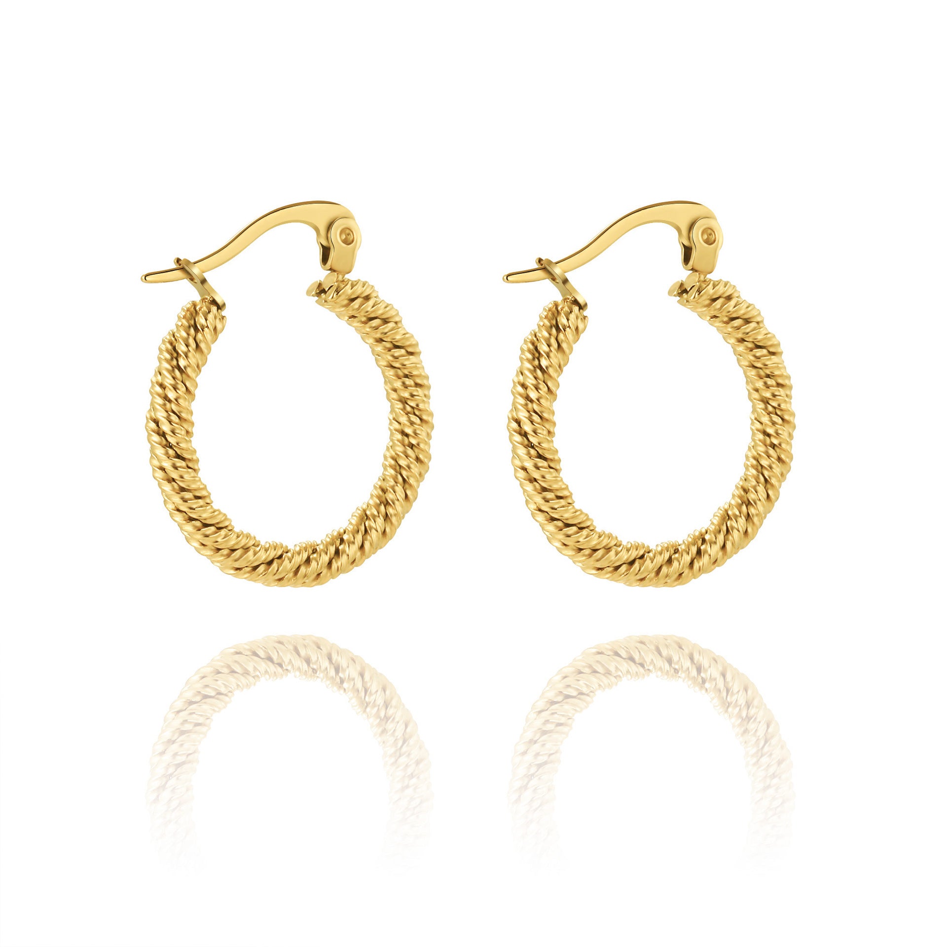 Utforska den här fina samlingen av vattentäta, anti-färgade 18K guldpläterade örhängen, material som används för att skapa denna kollektion återvinns i en optimerad miljövänlig process.